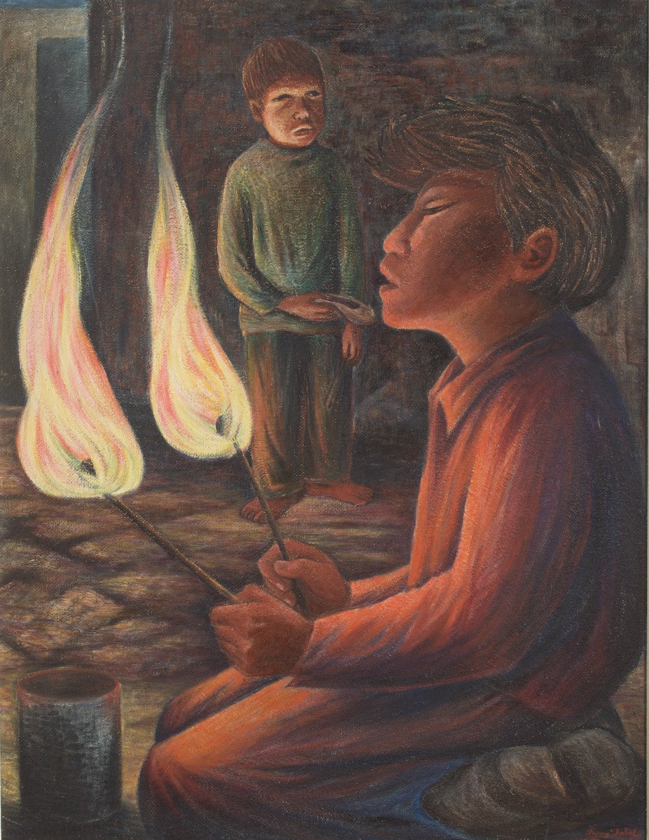 Raúl Anguiano (Guadalajara, 1915 – Mexico City, 2006) was a painter, illustrator, printmaker, and muralist. His artistic production went through different stages: he was a surrealist from 1938 to 1942, a realist during the 1940s, an expressionist from 1957 to 1966, and worked in kinetic art from 1962 to 1969, before returning to realism in 1970. He began his painting studies with José Vizcarra and Juan Ixca Farías at the Escuela Libre de Pintura (Free School of Painting) in Guadalajara, where he joined the group Pintores Jóvenes de Jalisco (Young Painters of Jalisco).