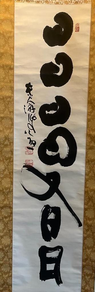 Shimizu Kōshō transforma, con sus trazos de tinta, el ideograma de "día" (nichi 日; que también significa "sol"), el cual comienza pareciendo un embrión y va naciendo a medida que transcurre el tiempo (o los días).