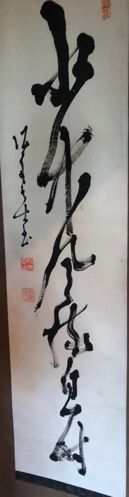 Renowned for his highly dynamic and personal calligraphy, this work by Takahashi Deishū showcases a cursive style of great stylization. The rapid, flowing brushwork and broken lines make it particularly challenging to read or transcribe.