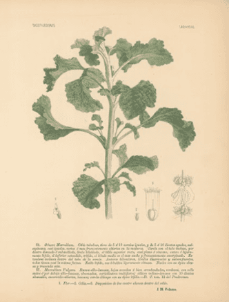Se alza hasta un metro de altura sobre un tallo cuadrangular de tono grisáceo. Sus hojas son fácilmente reconocibles: opuestas, dentadas, y notablemente peludas y rugosas. Es polinizada por abejas, mariposas y moscas de las flores.