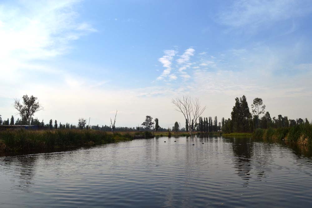 La investigación sobre los remanentes lacustres de la cuenca de México y su relación con el calendario agrícola me arrojó, como principal resultado, encontrar una vinculación de la traza de los canales de Xochimilco, Tláhuac y Chalco con la alineación con cerros prominentes en el horizonte, como los volcanes Popocatépetl, Iztaccíhuatl y el Ajusco, por nombrar algunos; y con adoratorios con petrograbados en la zona de San Gregorio Atlapulco y de Santa Cruz Alcapixca, como lo es el sitio de Cuahilama. En este cuadro se aprecia el lago de Tláhuac y Chalco en los límites del Estado de México con la Ciudad de México; rodeado por la mancha urbana, aparece el volcán de Xico, el cual significa “ombligo”; en su interior aún se cultiva el maíz y tiene un pequeño adoratorio alineado con Cocotitlán y el Iztaccíhuatl.