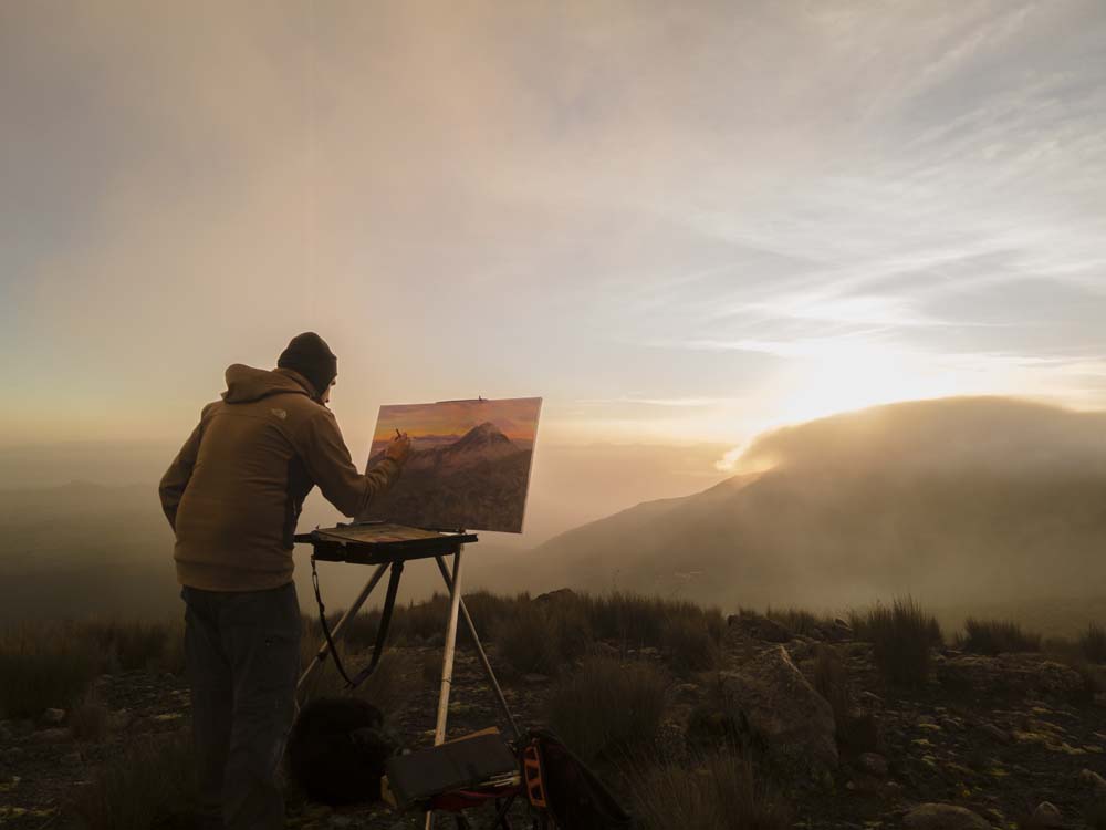 En el regreso del Sol hacia el sur, acudí a plasmar su salida en la horqueta que forman los picos Heilprin, una referencia natural para marcar con exactitud el paso cenital del Sol al amanecer. Cabe mencionar que en el suelo rocoso se encuentran dos piedras talladas en forma de molcajetes, llamadas chicalli, y en algunas ocasiones tenían agua depositada en su interior, que reflejaba el brillo del cielo al amanecer.